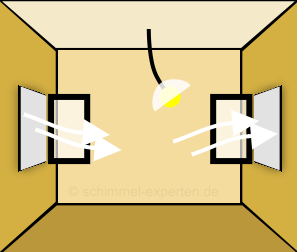 Richtiges Lüften: Sorgen Sie mehrmals täglich durch das Öffnen von Türen und Fenstern für Durchzug. Schon nach fünf bis zehn Minuten ist die verbrauchte und feuchte Luft ausgetauscht. Durch kurze Lüftungsperioden vermeiden Sie Energieverluste und Auskühlung der Bauteile. Ein weiterer Nebeneffekt: Sie verbessern das Raumklima, denn Schadstoffe (z.B. Druckerstaub, etc.) werden auch abgeführt.